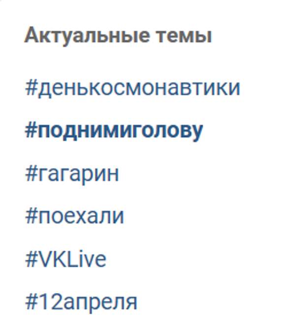 В числе самых популярных хештегов «ВК» стали именно те, которые относятся ко Дню космонавтики: